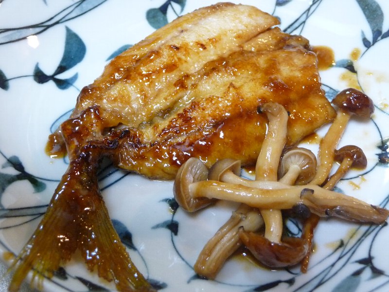 本日の夕ご飯、アジの照り焼き風と煮物だよん。明日はビン缶捨てに行かなきゃ!!