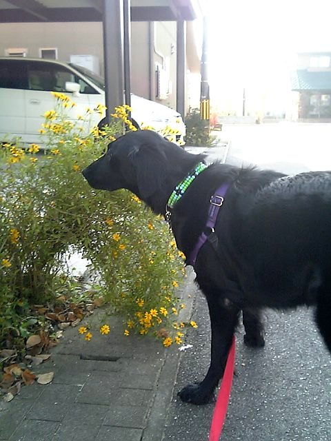 お散歩始めてすぐに紀州犬の太郎君、凛を見つけて座ってたのがぴょんと跳ね起きて尻尾ぶんぶん、もう少し道路側にいてくれたらねぇ(^皿^;)