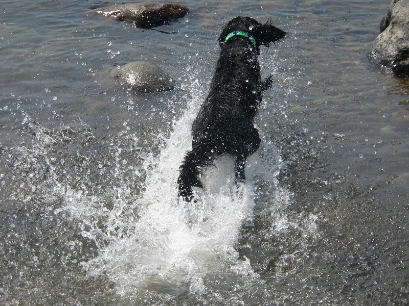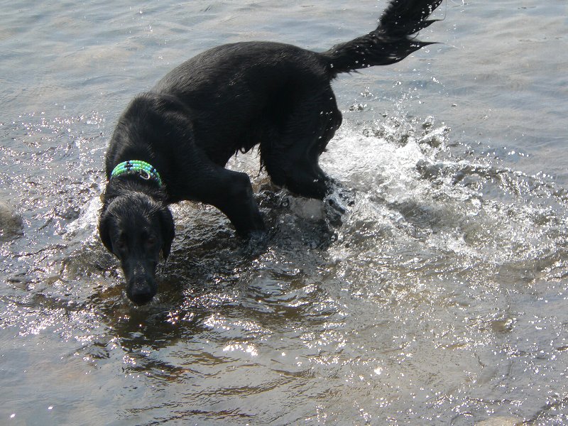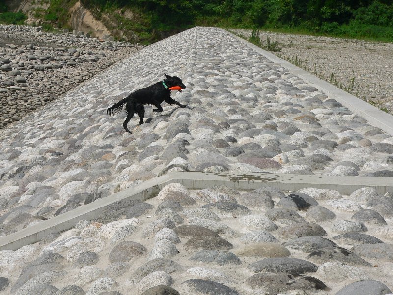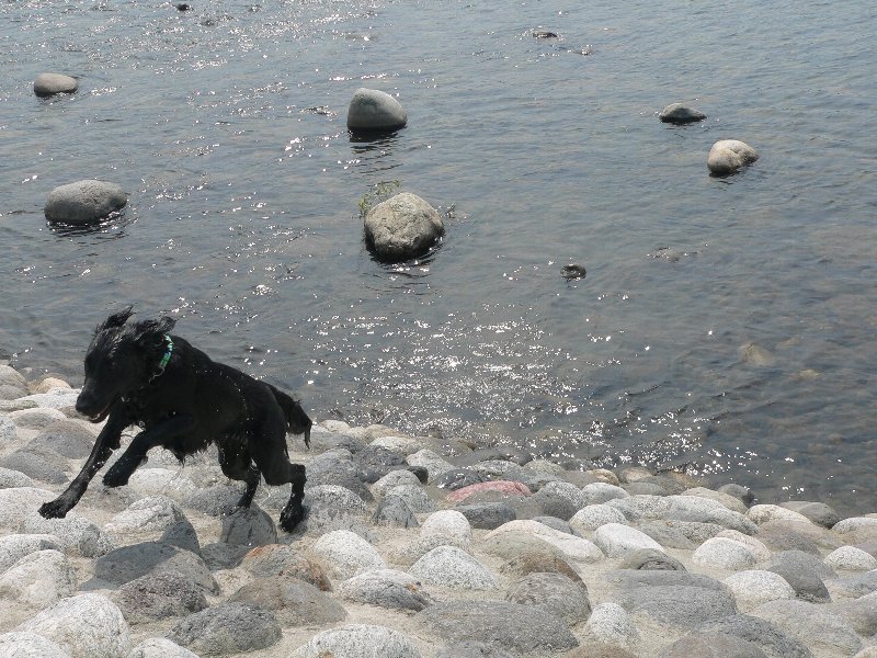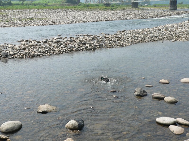 本日の場所、4年前ヴェスタと一緒に遊んだ場所、深みがあんまりなくって足元が石なんで汚れはしないんだけどスイマールーシーには物足りない?