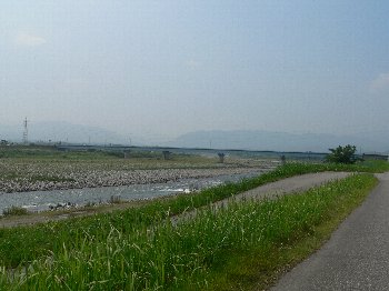 さっきのとこみたいに河そばまで斜面じゃなくって途中に少しフラットスペースもあって河の深さも少しある?