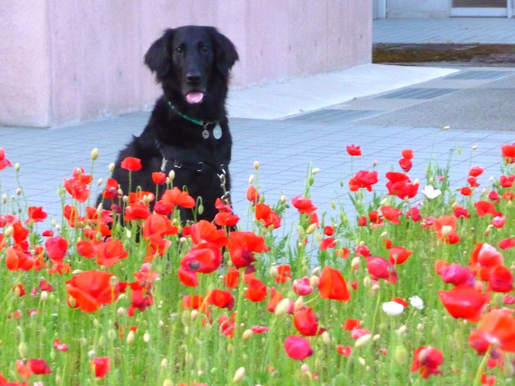 凜は走んなくっていいからねぇ~、あっ!かわいいお花咲いてるよ、ポピーかなぁ~?