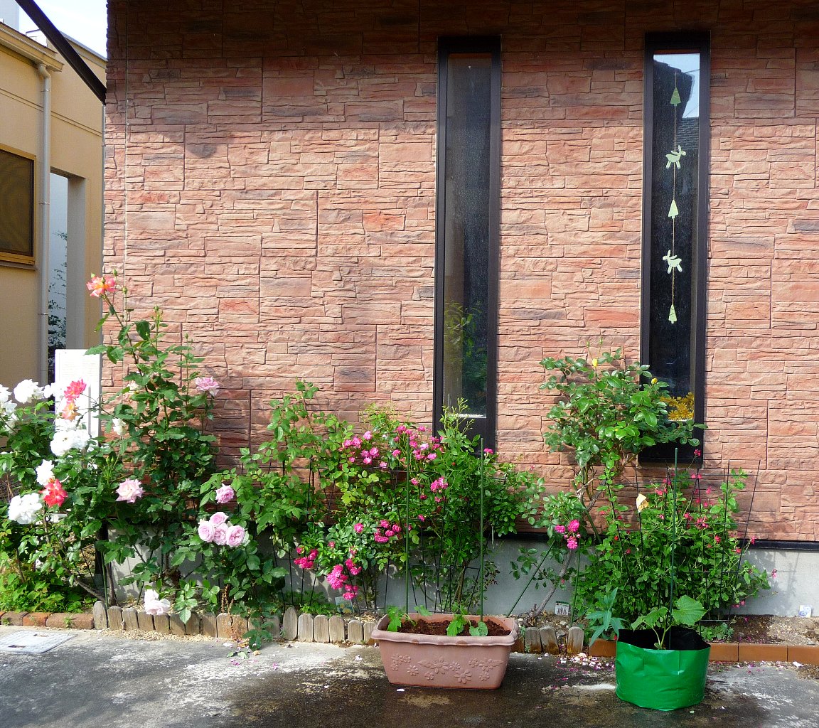 で、我が家のゴーヤときゅうりはいつものここに、後ろの窓にカーテンができることを願う!!