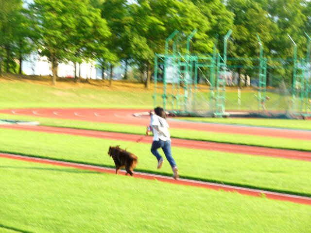 今日は暑くってなかなかお散歩に出れなかったんだけど夕方もう17時ごろ?すこぉし涼しく(も無かったけど --;)なった気がしたんでみんなで総合公園へ。