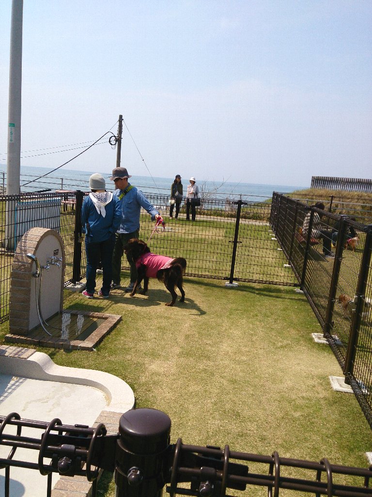 さてさて肝心のランは、道の駅と駐車場挟んで反対側で小矢部のランの小型犬エリアを二つに区切った感じでした。