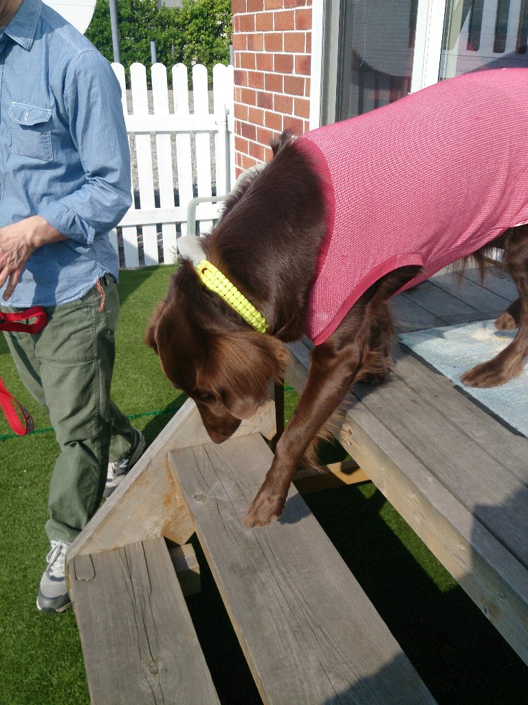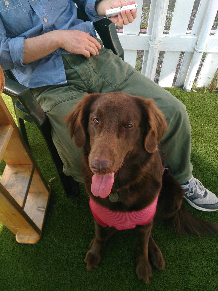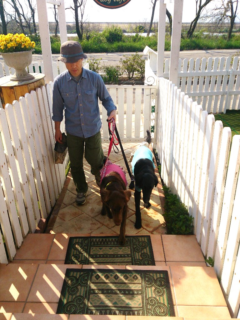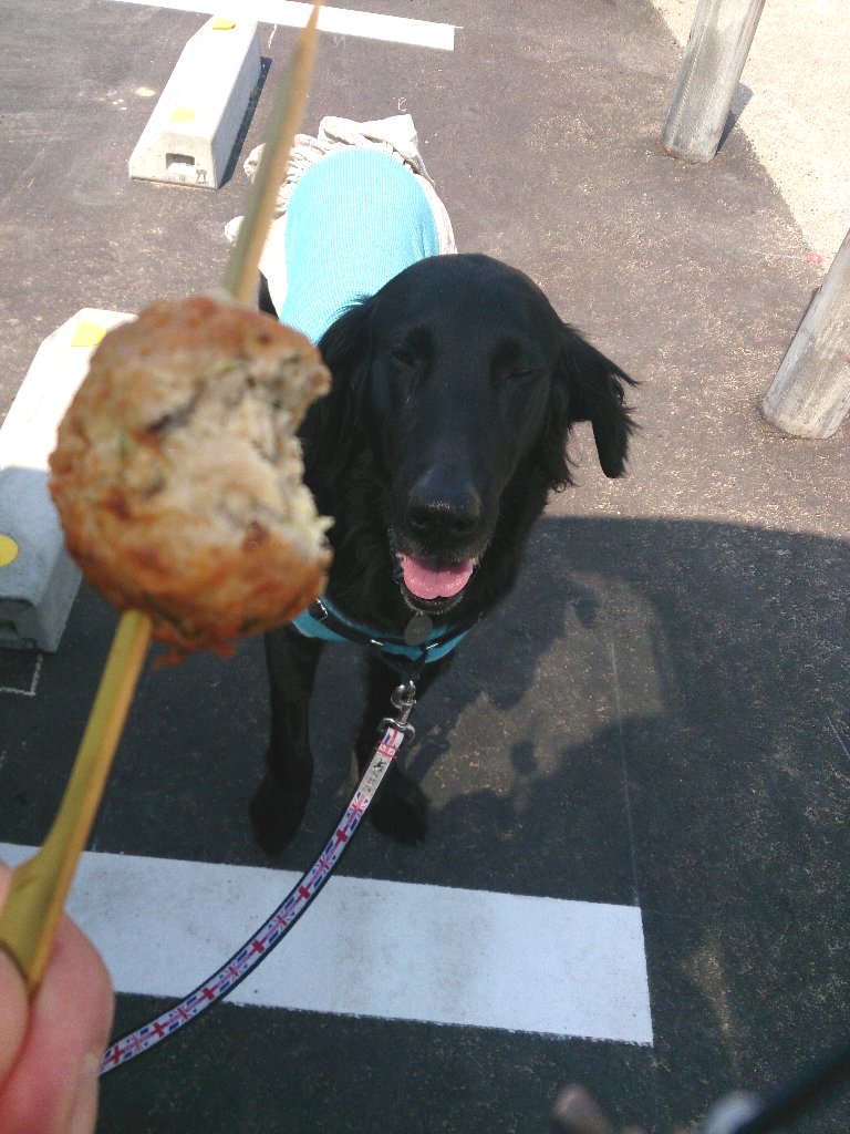 凜ちゃんはそんなに入りたそうに暴れるでもなく外にあったテーブルの下でここに何頭もいたであろうワンコのにほひを堪能、お手紙読み漁り、そして出てきたワンちゃんたちが結構物怖じせずにご挨拶に来て売れてこれまたご満悦。後は小矢部のランが出来た当初もそうだったようにワンコ連れてないワン好きの人らが沢山いらしてその方達にもいっぱい撫でてもらってました。