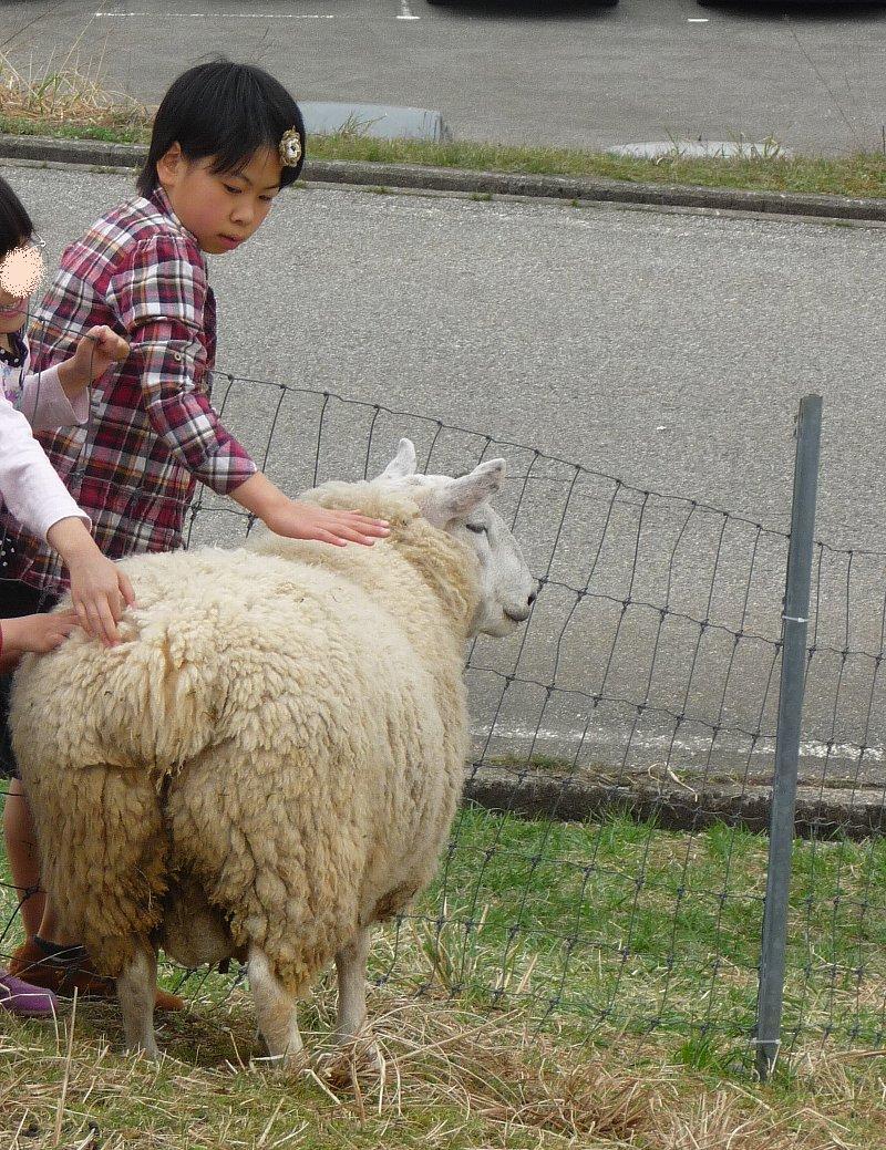 んで、ヤギさんとミニ豚さんを見ながら更に下へ下るとひつじさんがいました。