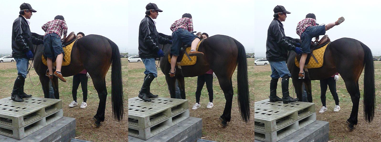 2枚目の写真に遠くで心配そうな一人と2頭が写ってますね(^m^)