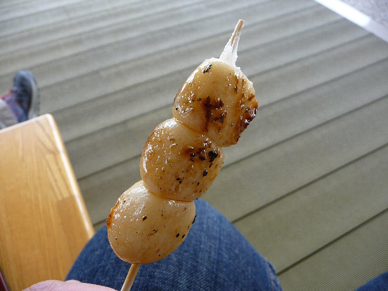 食べた後はお隣のお店の方でおせんべいを買ってお団子と白エビソフトを頂きました。