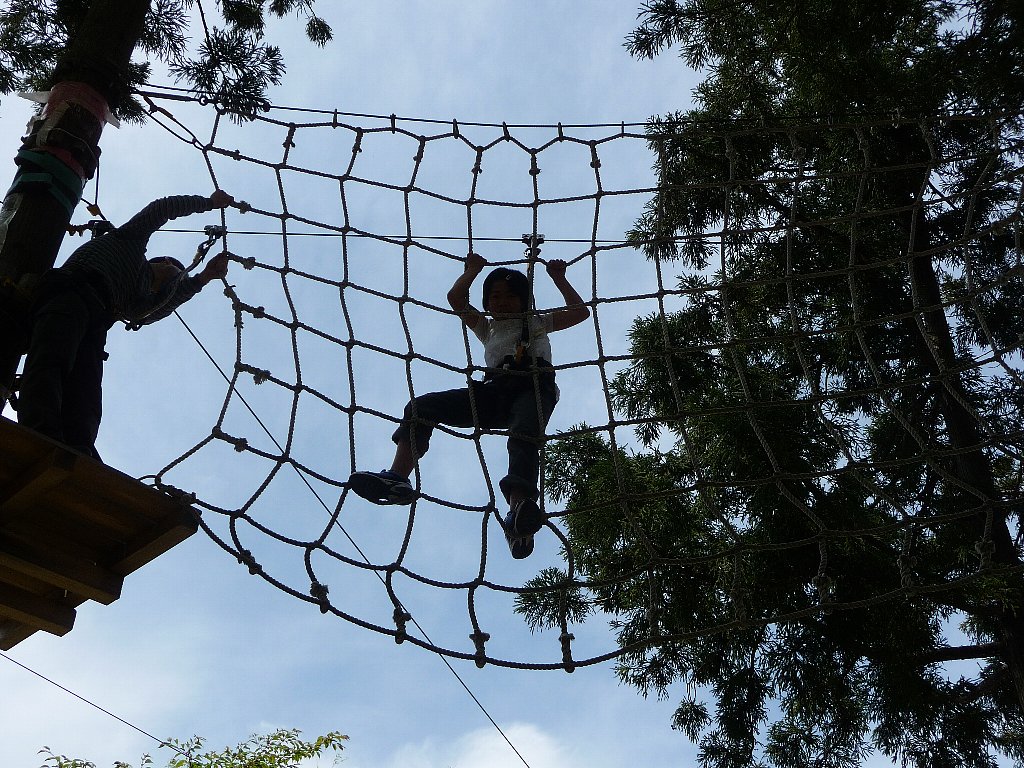 中学生以上だとねえちゃんの怖がった網のの前から池の上をスライダーできます、とても楽しそうでした。