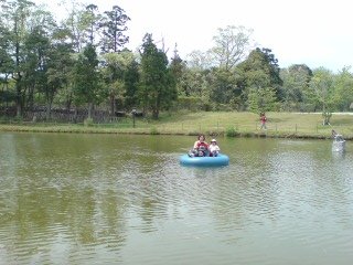 それからバンパーボートへ、でもねこれが3台あるうちの2台が故障で1台しか使えず、しかも一人で乗る気満々だったねえちゃんなのに子供さんには保護者が、更にはハンドル子供さんに触らせないようにっておじさんからの注意(^へ^;)