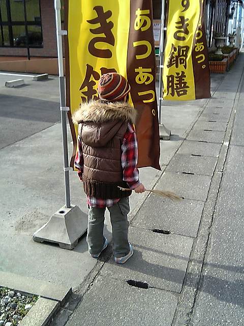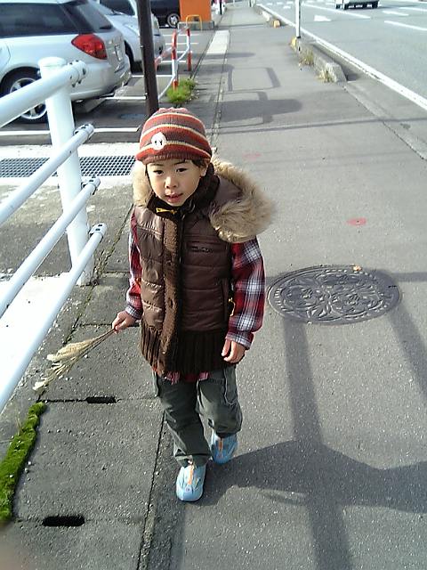 凛輔、大きな棒を割って2つにしたんだけど姉ちゃんにとられそうになって両方しっかと押さえてます。
