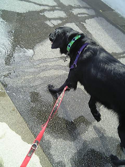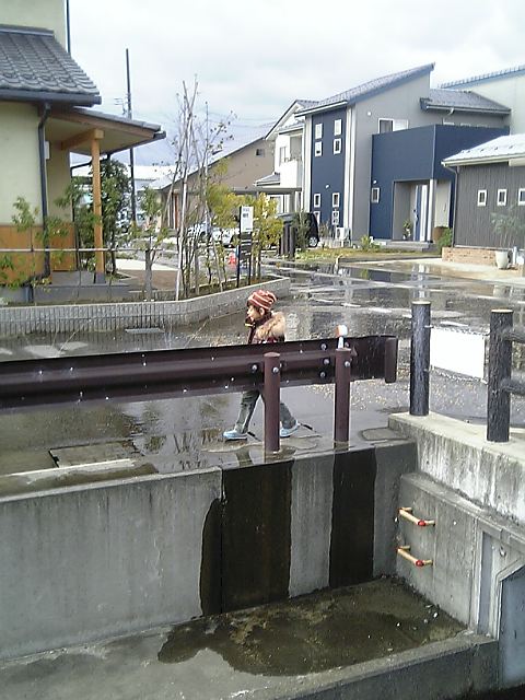 ぬれるよぉ~!わざわざそんなとこ歩かないの!
