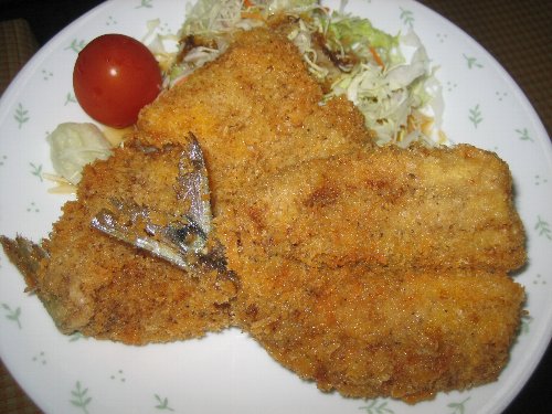 今夜は秋刀魚とカマスのフライ(^(00)^)