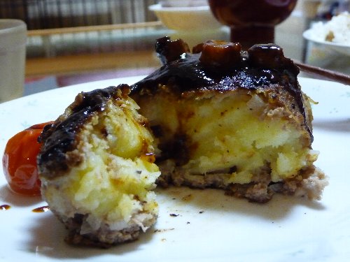 冒頭の写真を見ていただければもしかしたら気付かれる方もいるかもだけど、なんとか2ヶのポテトハンバーグの成形を頑張ってしてくれた姉ちゃんに免じて内容には触れずにおきましょう(^皿^;)