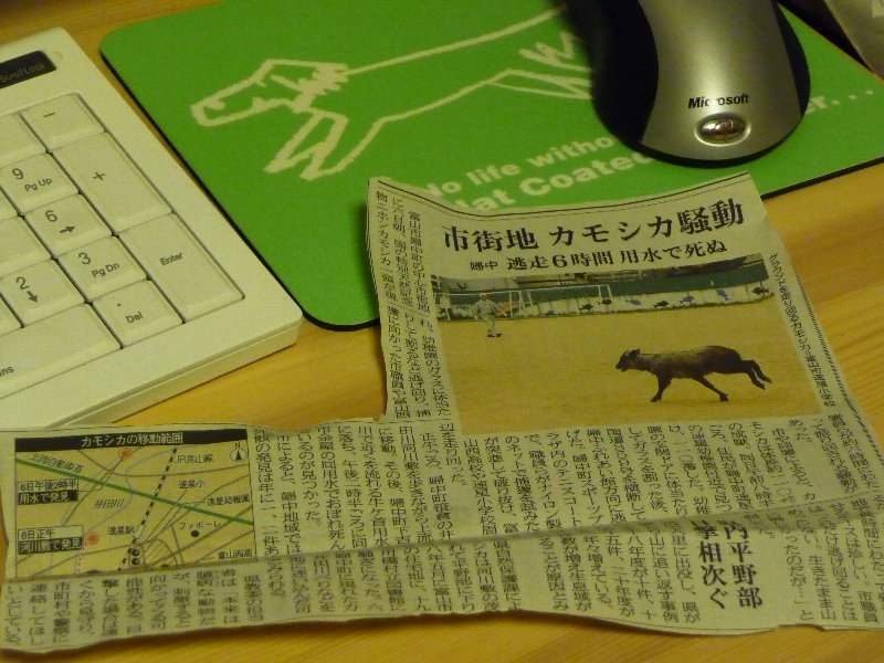 残念ながらこのカモシカちゃん、6時間逃走の後用水でおぼれて亡くなっちゃったんですが、カモシカって死んでいても確か触っちゃいけなかったはず。