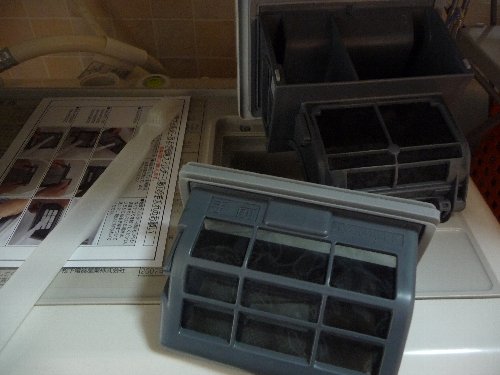 まぁでも我家のように洗濯頻度が高くって(家族3人しかも子供は女の子なのに?!)毎回っていったらものすごい回数となるのでフィルターを歯ブラシでこすると劣化も激しいって事で、埃を取って水で流して目地につまりがなさそうなら歯ブラシでこするのは日に1回でもいいかもって(^^;)500円とはいえそんなしょっちゅう破かしてたらねぇ~。