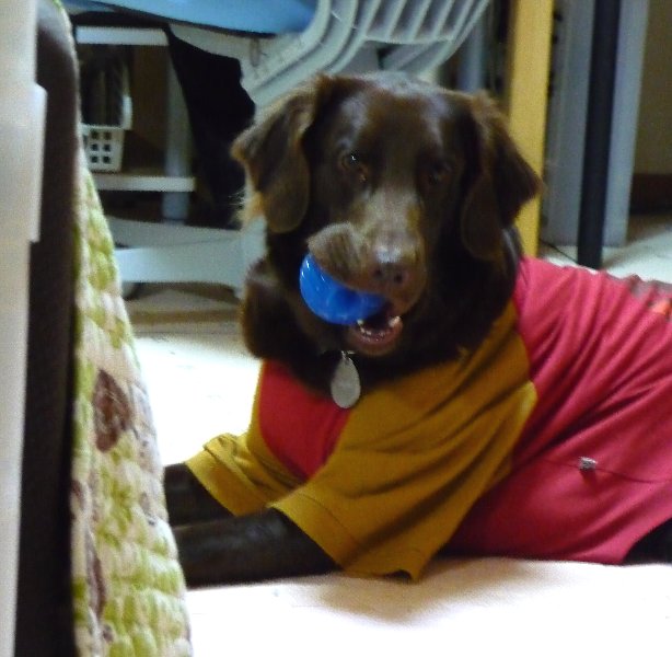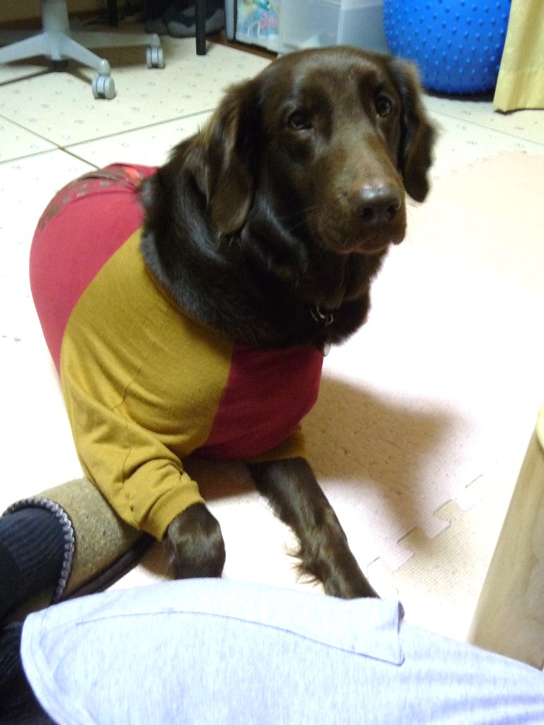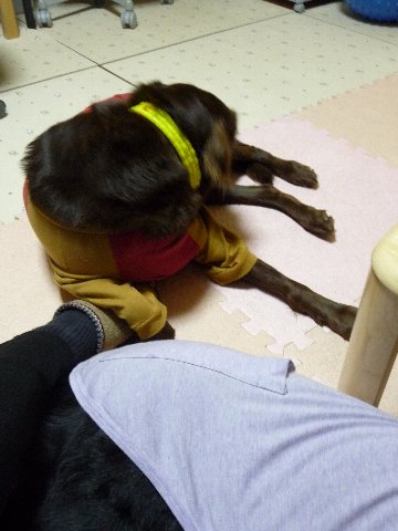 んでおうち戻って、朝合羽拒否してお散歩連れてってもらえなかったカヤさん、