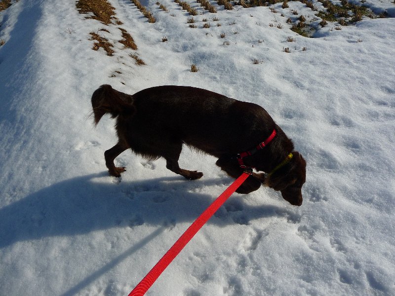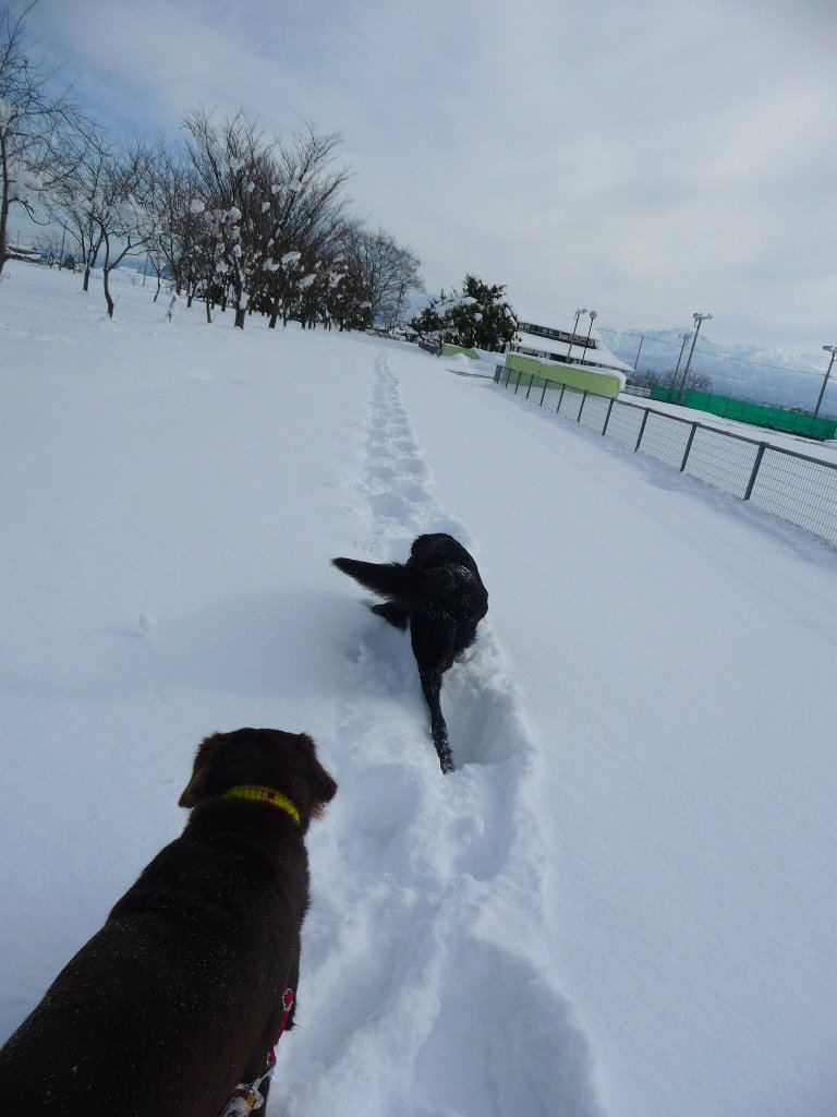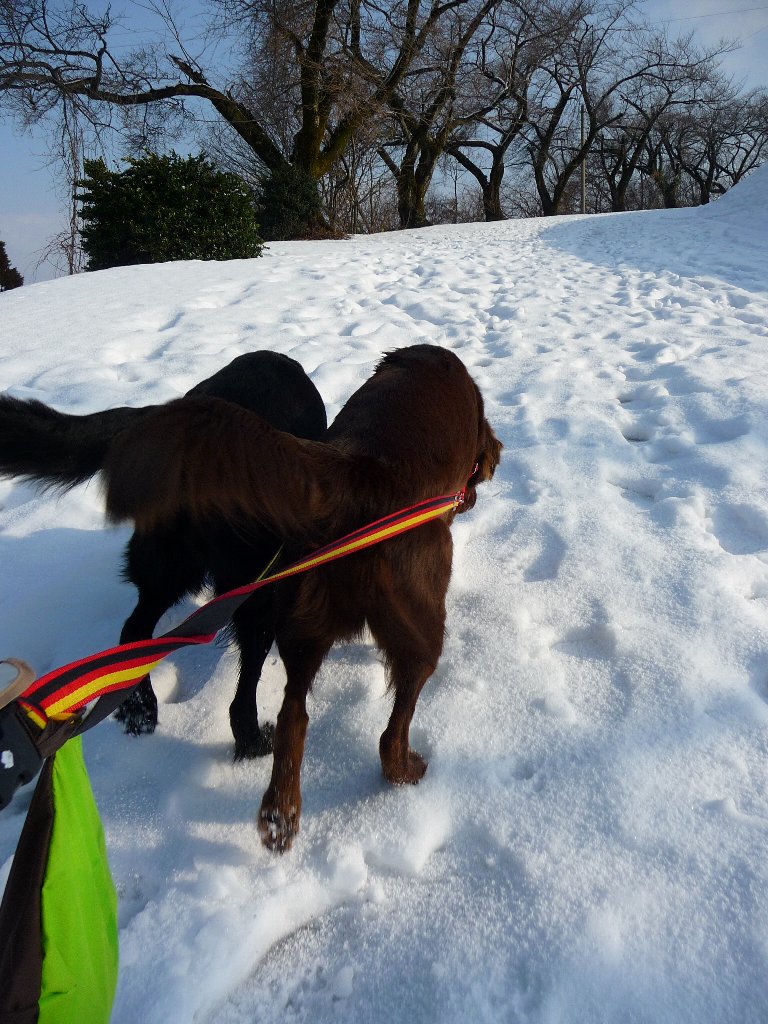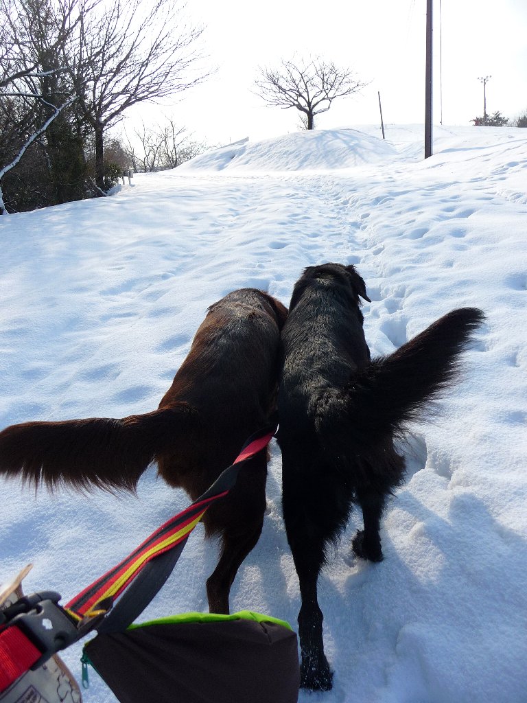 朝は曇ってたんだけど洗濯や片付け終わらせた頃には青空出てお散歩日和、でも下界の雪はほとんど解けて走ったりしたらグチャグチャになりそうだったしうちからそう遠くないお山へ。(30分くらいかな?)
