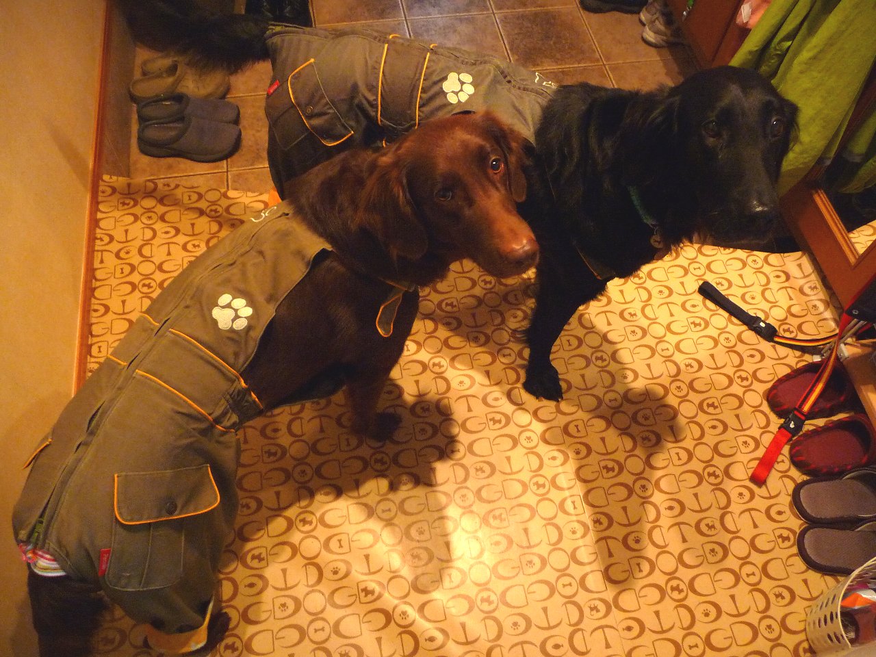 でもねあいにく昨日の雨が残って今朝は雨・・・合羽嫌いのカヤチ、昨日は結局お散歩いかなかったんだけどさすがに昨日凜ばっか行ってるのを見つめてたら今日は玄関に出てきたよ。