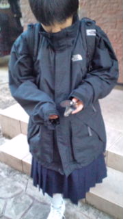 で、最初は着てかないって言ってたけど外出て数歩歩いた姉ちゃん、やっぱり着てくと・・・よほどさぶかったらしい(^、^;)