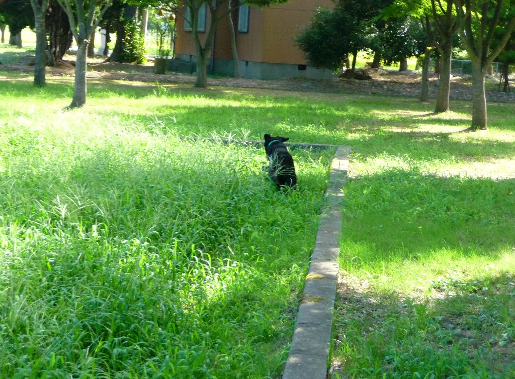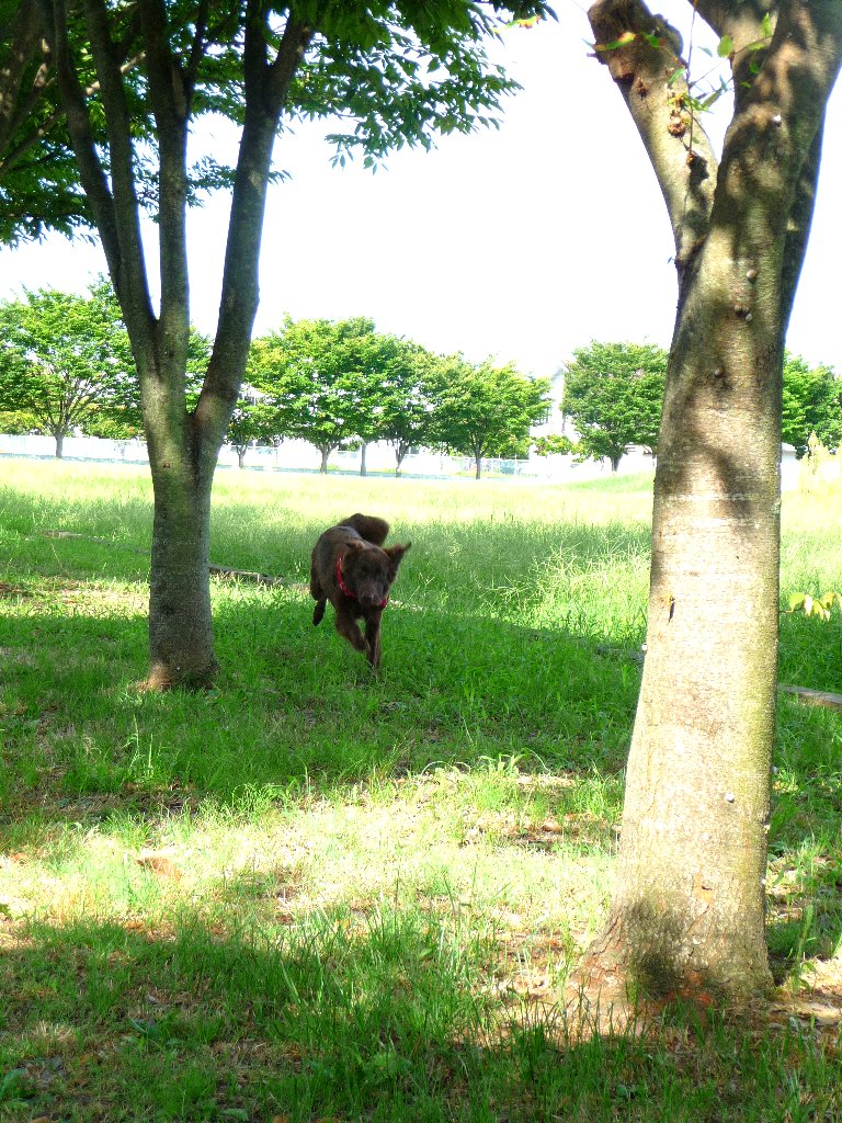 走り回ってうれしそうに凜にアタックもしたりしてたのになにやら木の向こうで???
