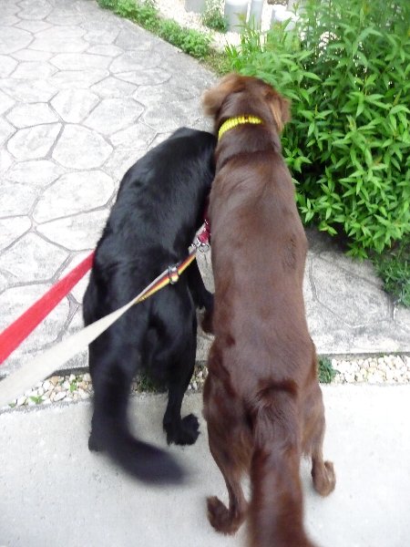 出発の前にちっこ行ってこようねと姉ちゃんと一緒にお散歩♪