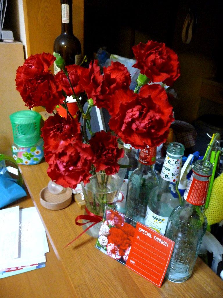 母の日にお花、初めて貰った♪(凜パパと姉ちゃん2人でお買い物、そのとき姉ちゃんが買ってきてくれたの ^。^)