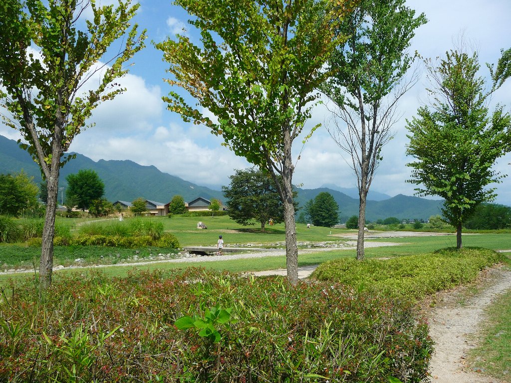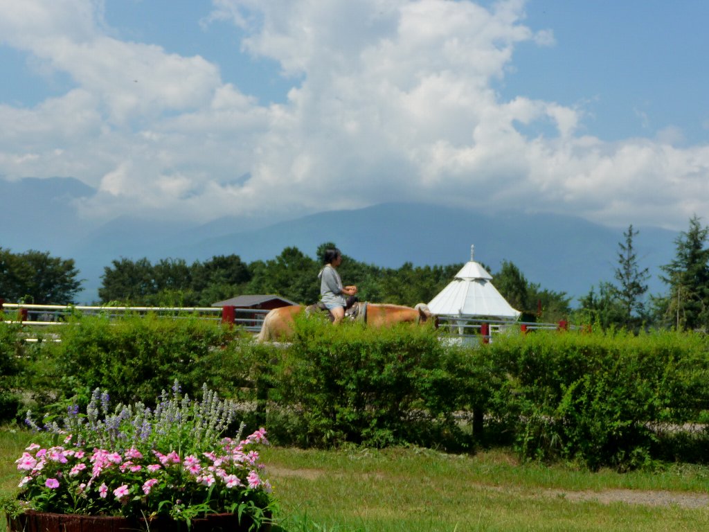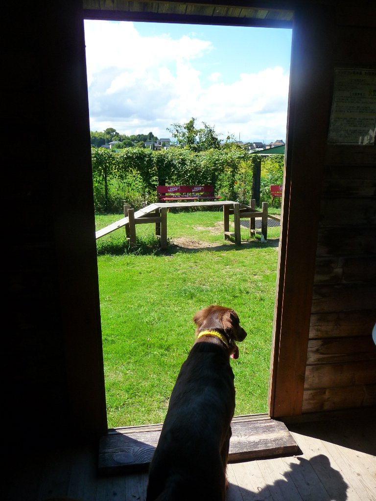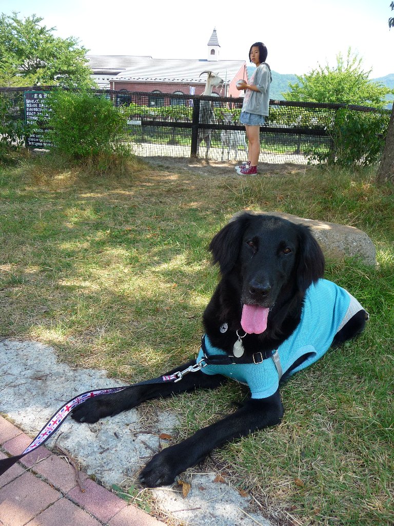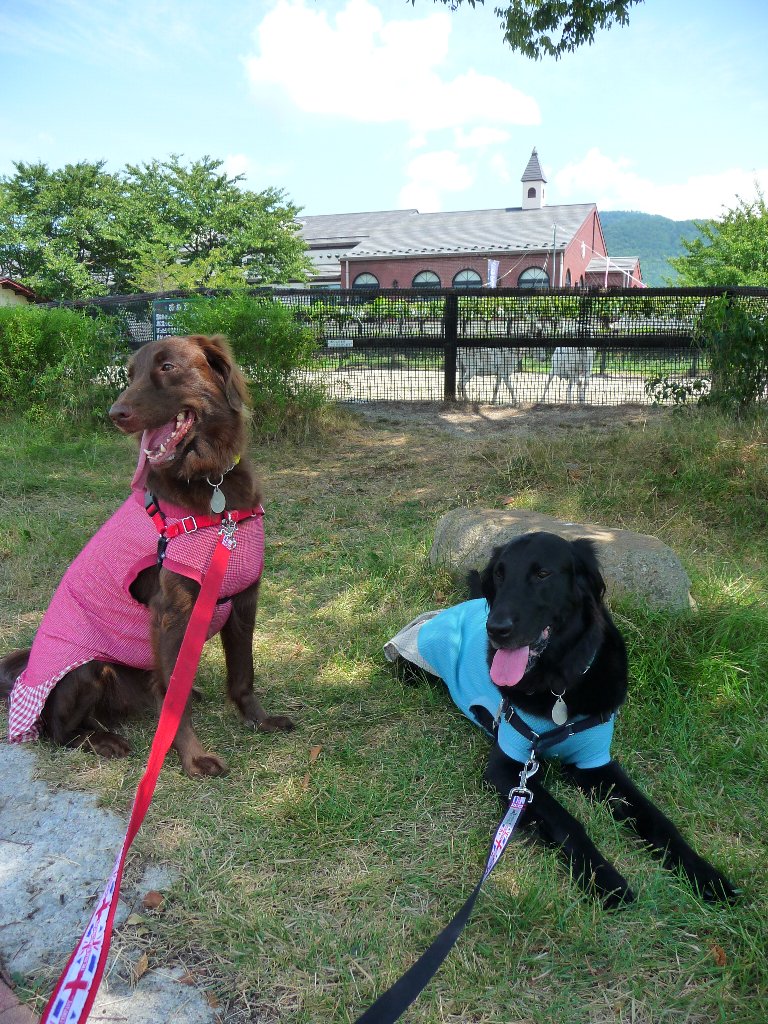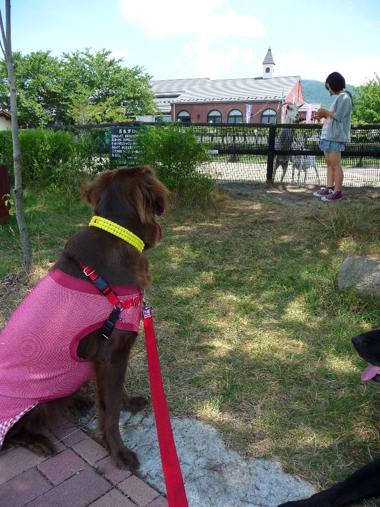 ではスイス村の場所は・・・とすぐそばにあった安曇野ちひろ美術館の駐車場にもなっている安曇野ちひろ公園に車を止めてchababaトイレタイム!で、ワンコは降りていいのか?と思って辺りを見回すんだけど看板には犬は入ってはいけませんの文字は無いものの糞は持ち帰りましょう的な看板もない、はっきりしないところはおろせないなぁ~。