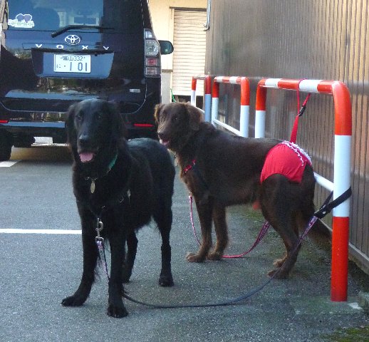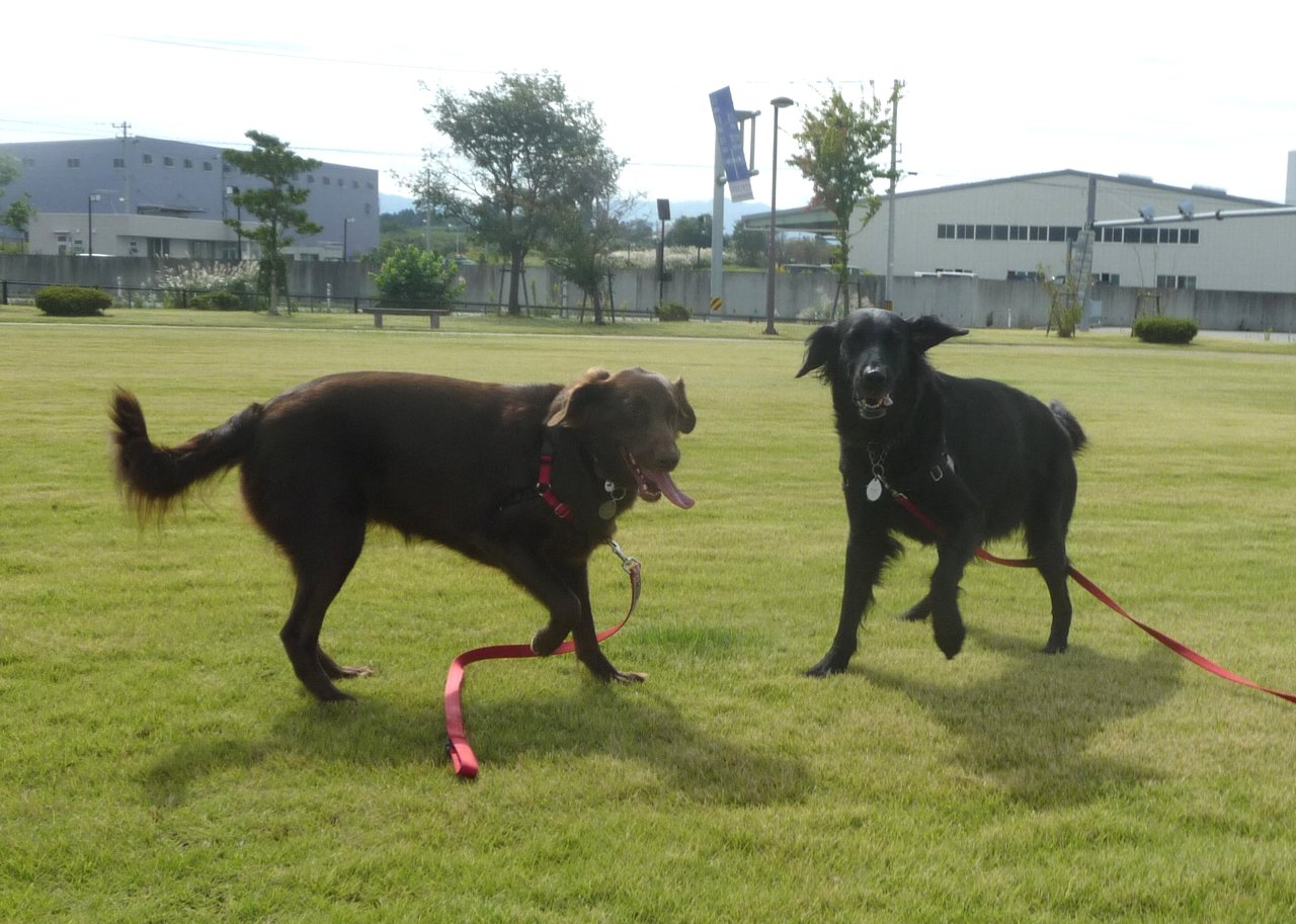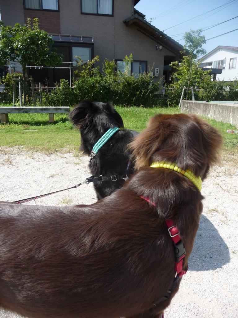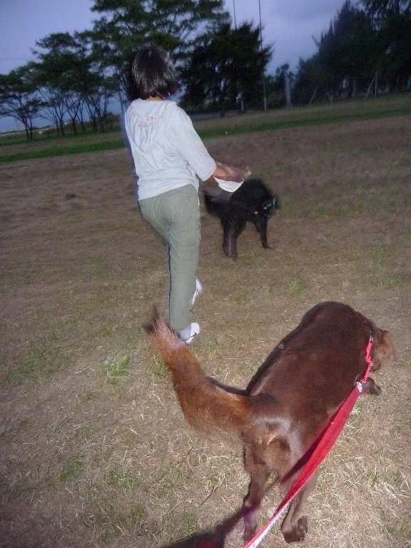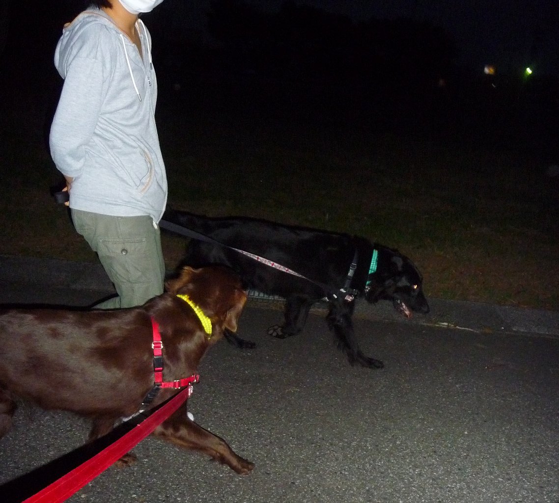 夕散に行ったら行ったで向ってきた柴に2ワン一緒にワンワンガウガウ応戦して引いてもよろけもしない(--;)