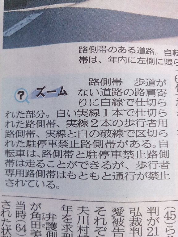 ってかそもそもの走ってはいけない実線2本の路側帯、これって大人たちはみんな知っていて子供達に教えてやっているのかしら?