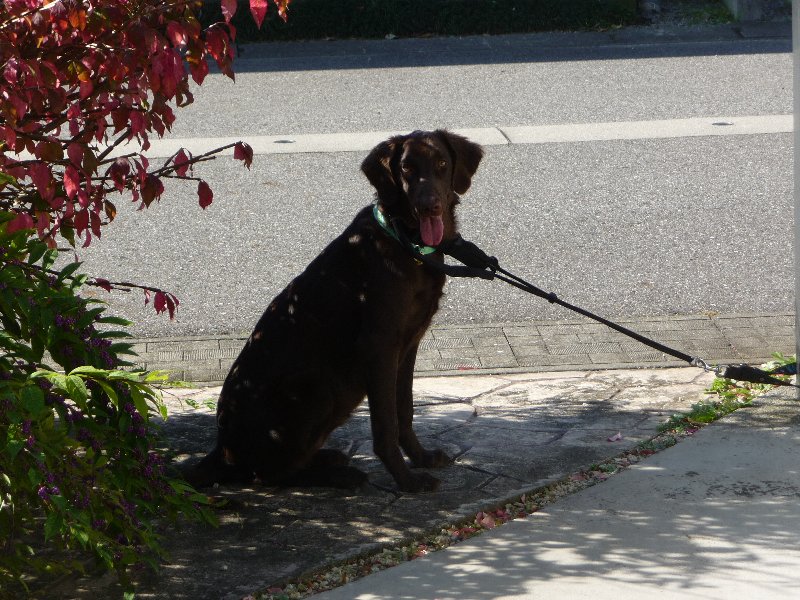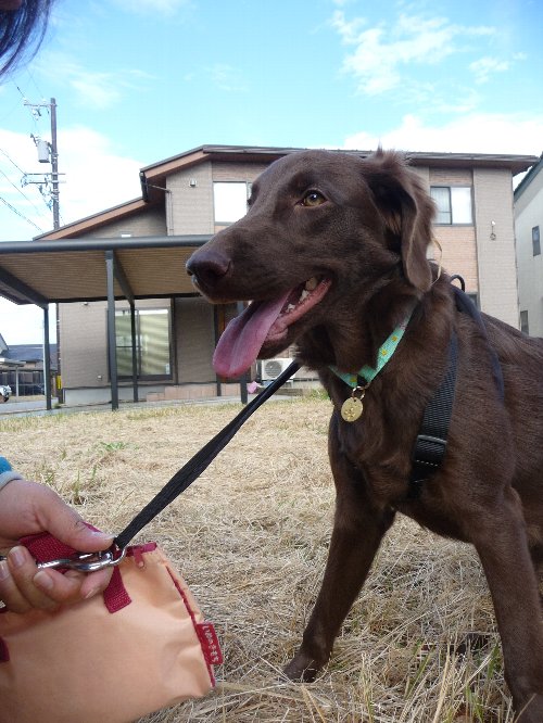 このハーネス、お散歩にはいいけど係留には向かない模様(--)係留するときはカラーにつなぎなおさないとね。