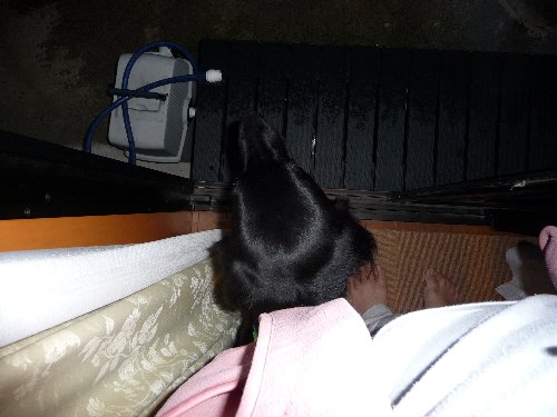 なのでchababaはソファー下の床で・・・朝起きたら背中いてぇ~。