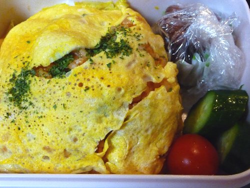 今晩のおかず用の鳥モモが2枚もあったのとヒヤゴハンの残りが結構あったんで今日のお弁当をオムライスにしてみました。
