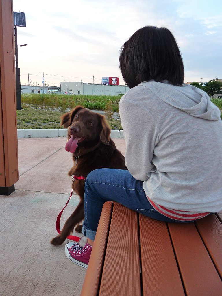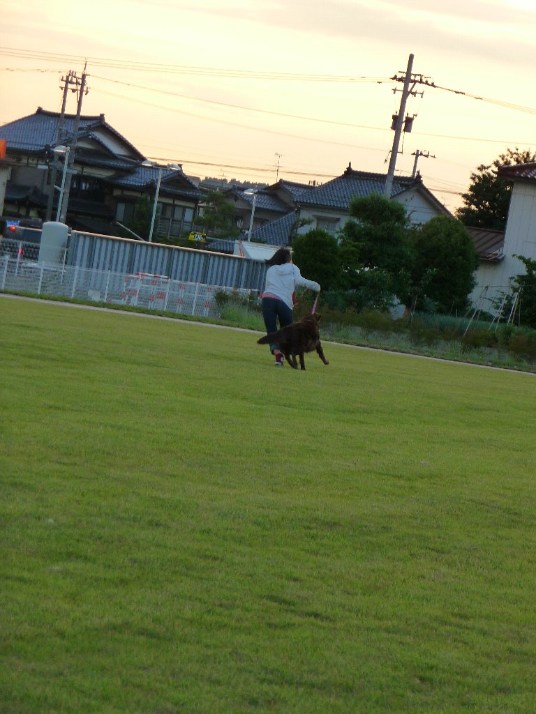 その後リビングの一角に固まってみんな思い思いのことしながらころころ、夕方少し風が涼しくなってきたかなって事でいつもの環水公園へ(^^)b