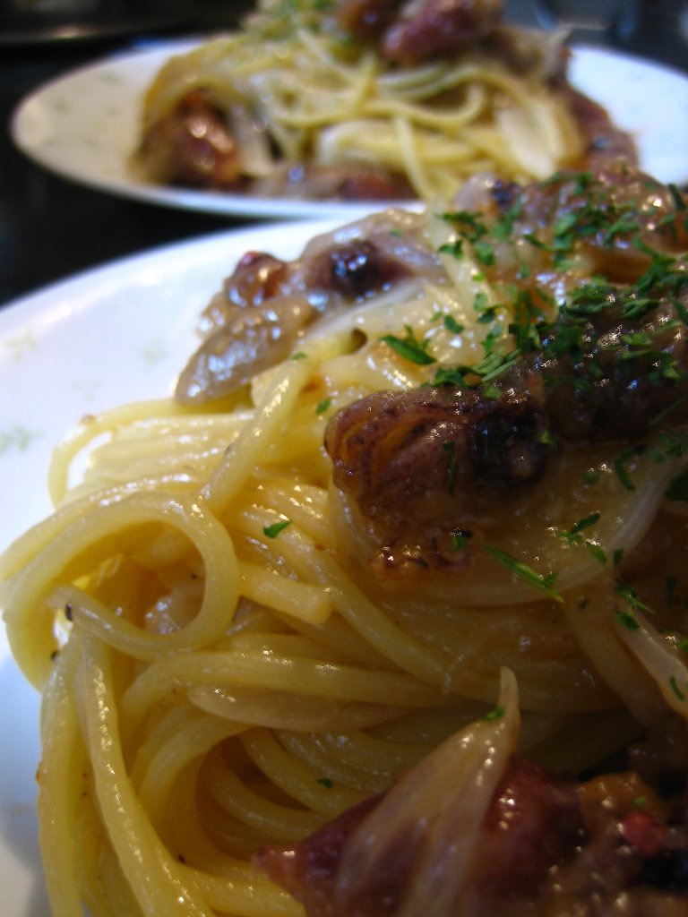 夕ごはんは簡単に作れるものをと、冷凍のハンバーグの種を解凍してあったものを焼いて、その焼き汁でパスタを絡めて味付けました。