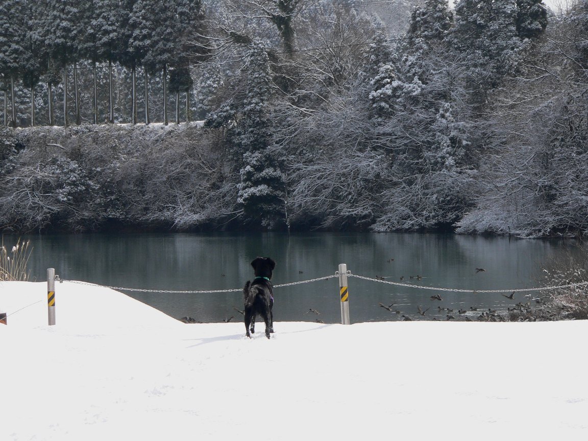 おうちに帰って空は相変わらずどよよ~んとしてるけど、風も無く少し雪が舞ってるのみ。