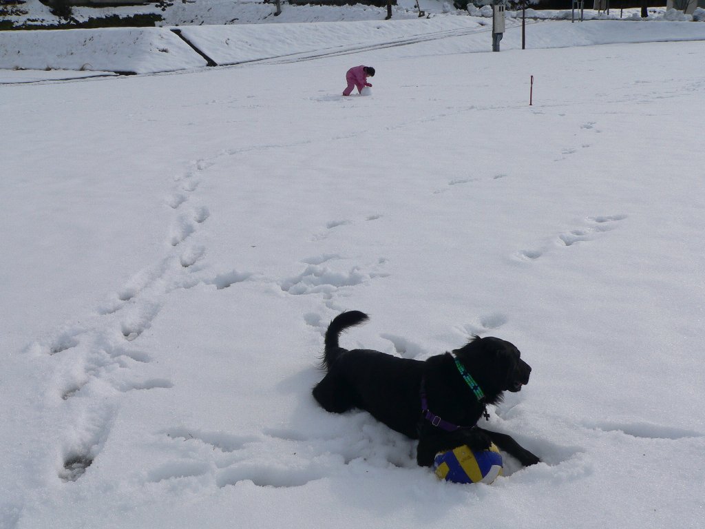 バニが来るまで30分余りだったかなぁ?その間は凜はchababaとボールで大はしゃぎ、姉ちゃんは雪でなにやら作ってます。