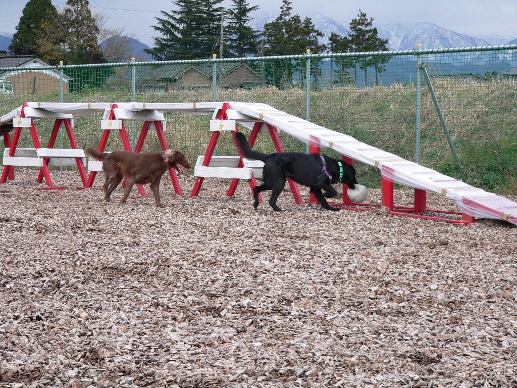 休憩とプロレスの繰り返しなんで、ちょっと目新しいことでもとトンネルにボールを蹴りいれてみる。