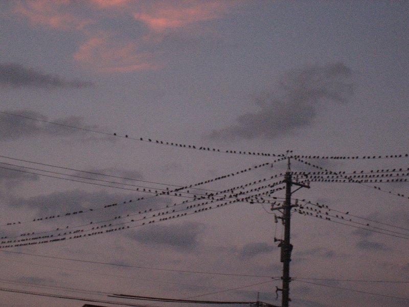 周りを見渡せば電柱のいたるところに大群・・・このままここで夜明かしするんでしょうねぇ~、明日の朝は糞だらけ?