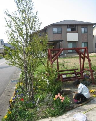 お外へでてみれば、昨日切っちゃったオレンジのチューリップにかわって、黄色や赤のチューリップが♪