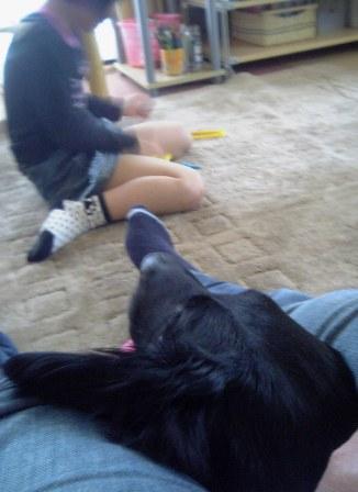 で、なぜか凛が動き回った後最後に落ち着く場所・・・ソファーに座ったchababaの足の間です(^^;)