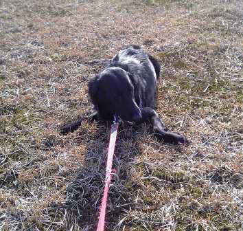 いつも散歩中にワンちゃんにあって、遊べそうな子の時は伏せさせてるから伏せてれば来てくれるって思ったんでしょうねぇ~、不憫なやつ。