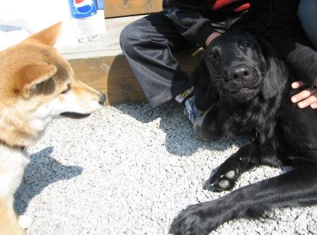 そのうちあかねちゃんも凛に気づいて、ハァハァ言いながら飼い主さんをぐいぐい引っ張ろうとするんだけど、そこは凛と違ってコンパクトな柴さん、全然近づけません。