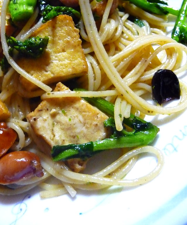 お昼は無印のタプナードのソース使って簡単にパスタ。