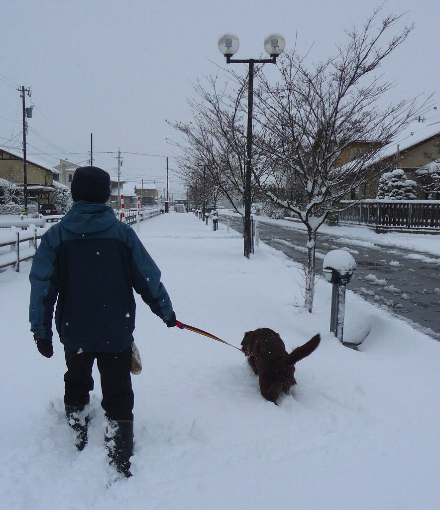 今日は月一金沢所用だったんでちょっとだけお寝坊させてもらってそれでもいいかげんに起きて準備して出かけたんですが行きは小杉辺りからうちんちの周りにはもうほとんど無い雪が・・・砺波に入ると突然沢山?!