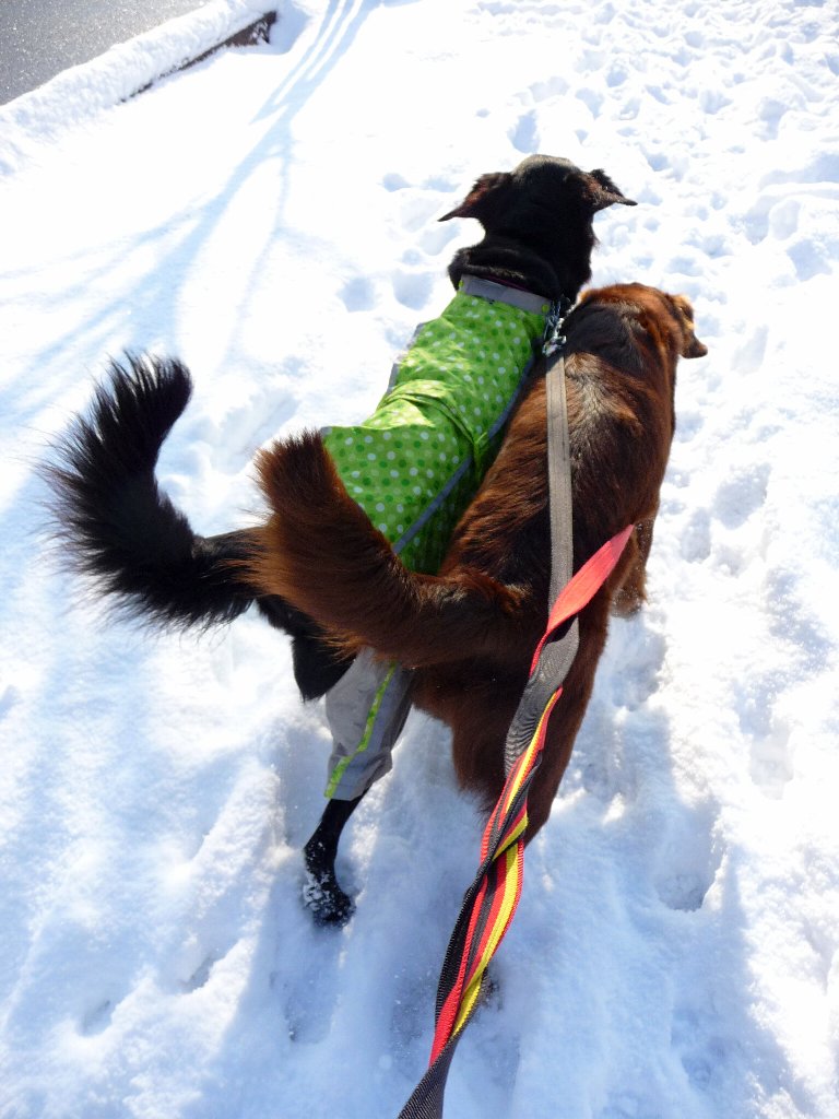 そんな春めいたお天気の中、日光浴して免疫アップ!って事で久々に凜ちゃん裸(?!)でお散歩に出かけました。