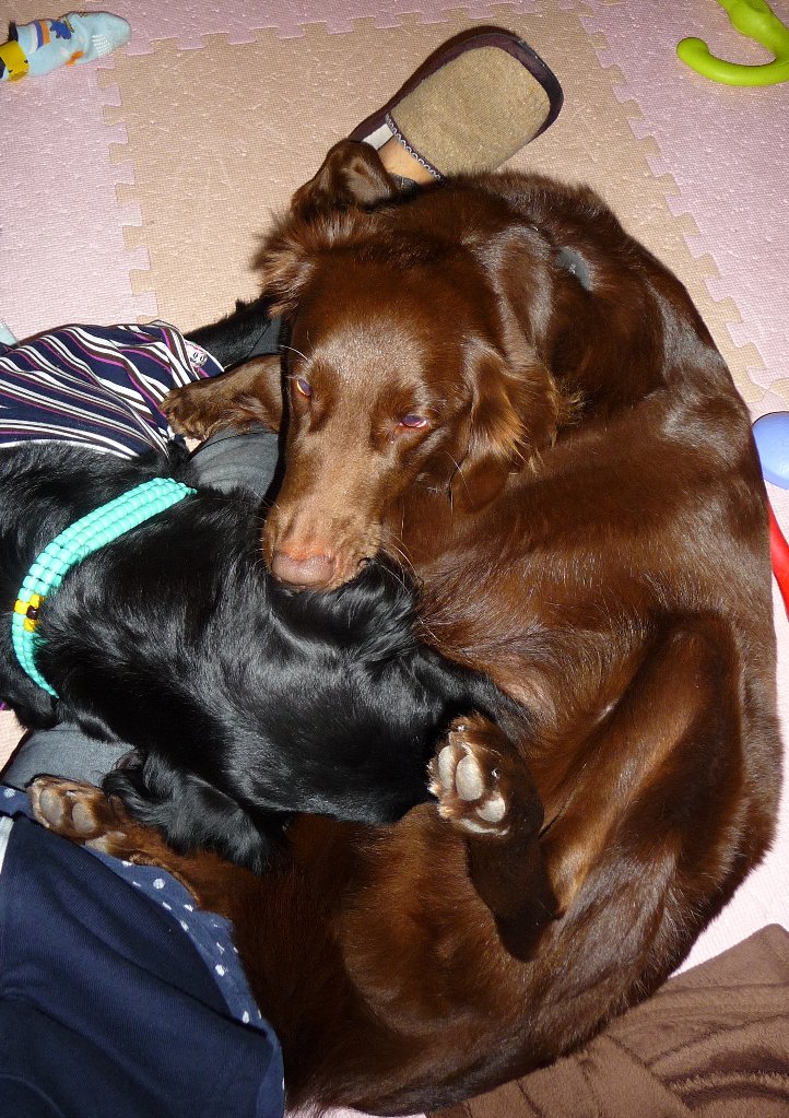 カヤ太っちゃいないんだけど凜と並ぶとなぁ~・・・フラットコーテッドレトリバー凜9歳、そしてカヤ3歳、今は凜にお付き合いでプチ安静中、凜が3歳の頃は姉ちゃんとそしてお友達と沢山走り回ってたんだもんあぁ~とこの時点ではちょっとカヤが不憫になって久々に行った野っぱらで・・・