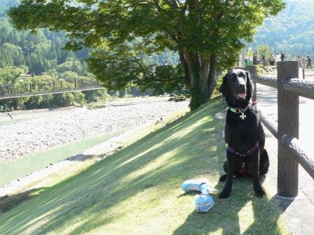 人で溢れかえる吊橋を上手に渡ってきた凛輔だけど、前方からトイプーとパグとミックスの3頭を連れた方が・・・やり過ごせないだろうし凛パパ少し離れたところへ退避しました。