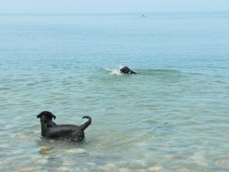 海は潮干狩りのときに凛も行ってるんで初ではないのだけど、お友達U^ェ^Uとの川遊びも海遊びも今年初!!