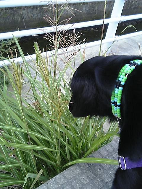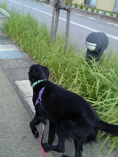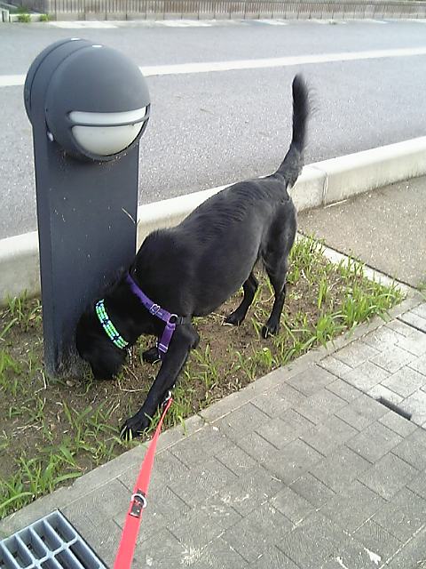 風が心地よいお散歩の途中、雨の翌日、匂い嗅きは念入りです。(^^;)